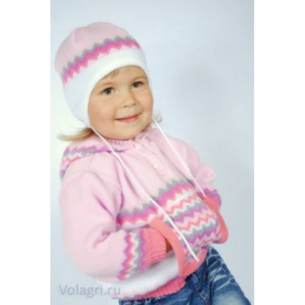 Джемпер для девочки. Капюшон и нагрудный карман-муфта, рисунок <<елочка>> приятной цветовой гаммы. Горловина отделана застежкой поло на двух кнопках. Капюшон, рукава и низ изделия отделаны вязкой <<резинка>>.