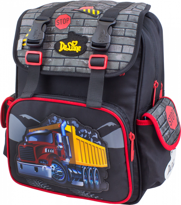 Два основных отделения, на передней части рюкзака расположен большой карман с отделением для письменных принадлежностей, над ним карман под клапаном на молнии и два боковых кармана на липучке.