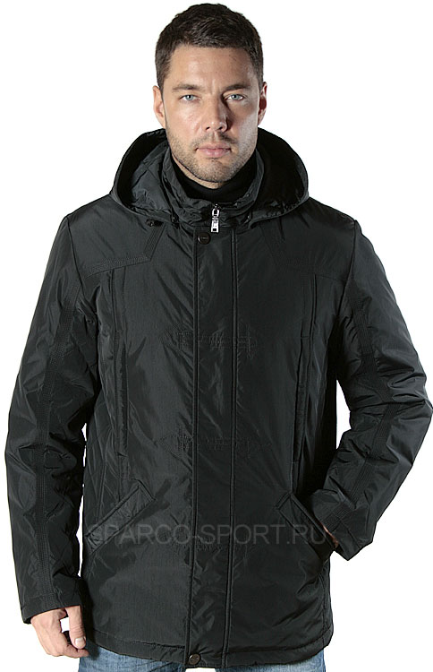 Теплая мужская куртка из 100% полиэстера представлена в синем и черном цвете . Модель со строгим силуэтом имеет втачные рукава, вместительные карманы и большой воротник-капюшон. Планки на потайной застежке и карманах украшены декоративными швами. В пошиве в качестве наполнителя использован тонкий синтепон, который отлично защищает от непогоды.