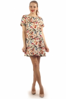Это платье из ткани с ярким рисунком обязательно создаст вам отличное настроение. Простой крой, яркий принт - ничего лишнего. Длина платья увеличивается от размера к размеру.
